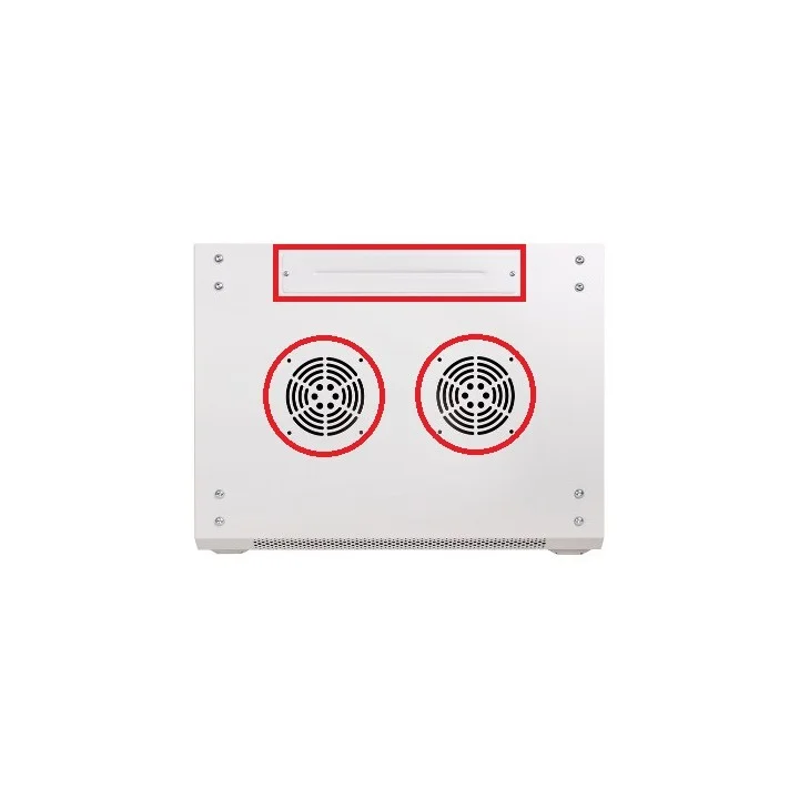 Szafa została wyposażona w przepusty kablowe w suficie i podłodze, otwory wentylacyjne oraz miejsce na montaż 2 wentylatorów 120×120 mm, co zapewnia prawidłową cyrkulację powietrza i stabilne warunki pracy urządzeń.